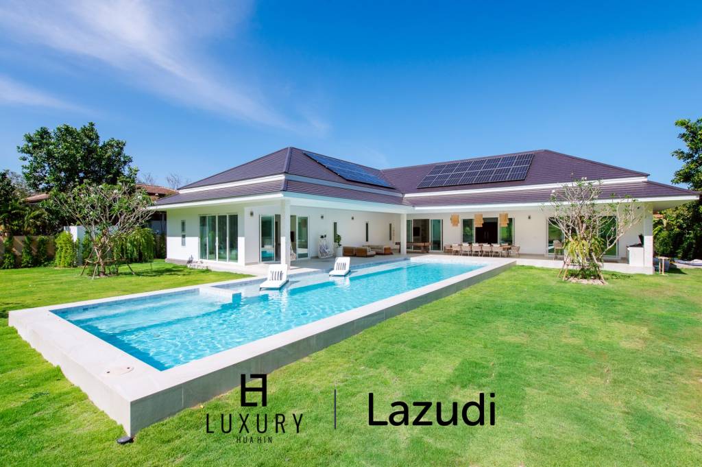 Lo siguiente Villa Ventaestá ubicado en Palm Hills Golf Club and Residence, en Cha Am, Phetchaburi y está disponible al precio de venta de ฿33.0metro, (฿82,500 por metro cuadrado). El tamaño de la propiedad es 400 SQM y 5 baños y 5 baños Las principales características de esta propiedad incluyen :Security Guard, CCTV/IP Camera, Swimming Pool, Library, Garden, Elevator, Gym, BBQ Area, 24-hour Security, Golf, Driving Range, ClubhouseyGarage.