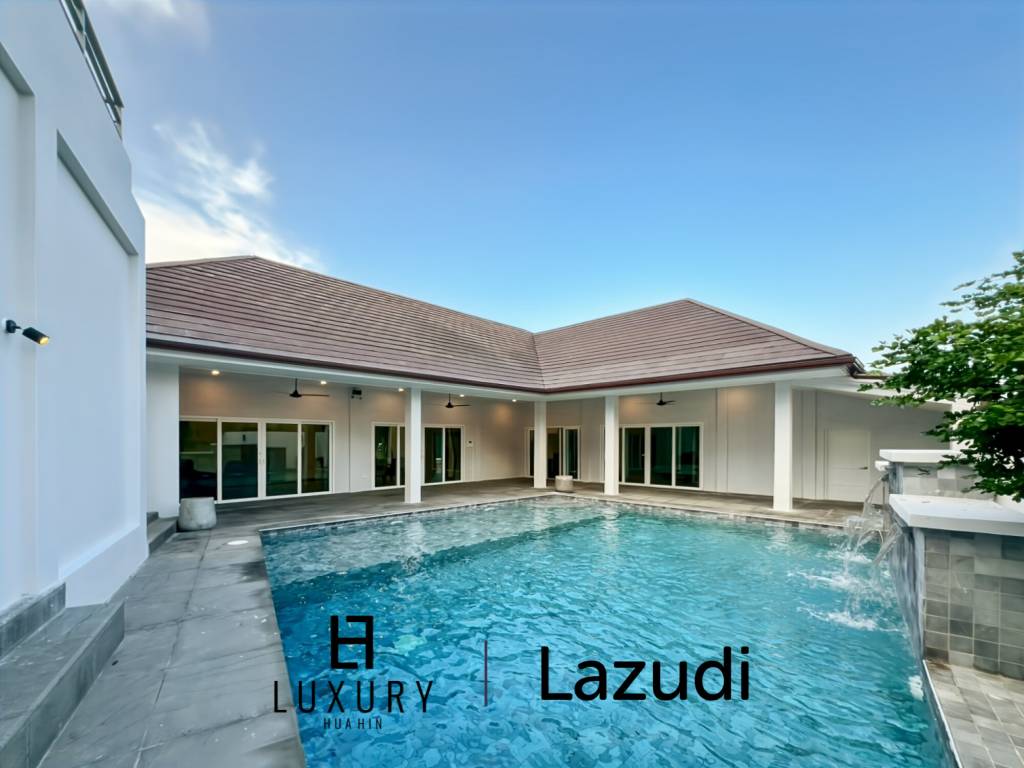 Cette élégante villa de plain-pied à Khao Tao offre 180 m² d'espace de vie moderne sur un terrain spacieux de 660 m² acceptant les animaux domestiques. Elle crée une transition harmonieuse entre l'intérieur et l'extérieur grâce à une vue imprenable sur le jardin.