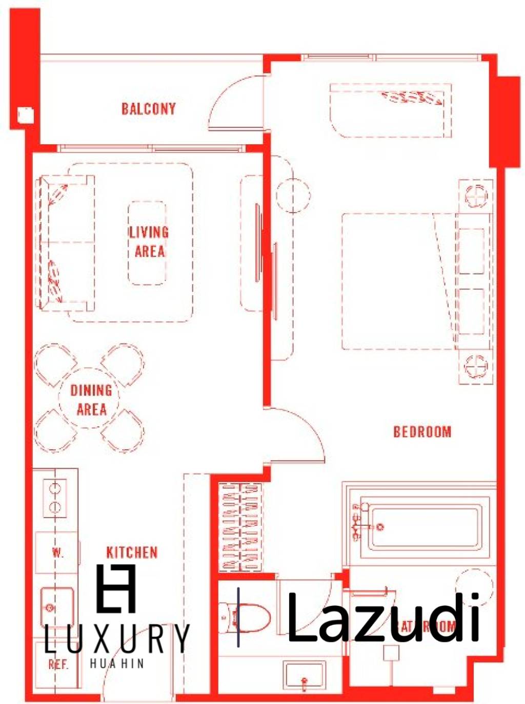 1 Bed 1 Bath 52.75 SQ.M The Standard Residences Hua Hin