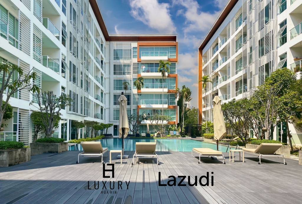 This 2 bedroom, 2 bathroom condo is located in Khao Takiab only 200m from the beach. The unit which is on the 7 floor is a good size at 95 sqm and has an open plan living / kitchen area, 2 bedroom and 2 bathroom, along with a nice balcony overlooking the pool.