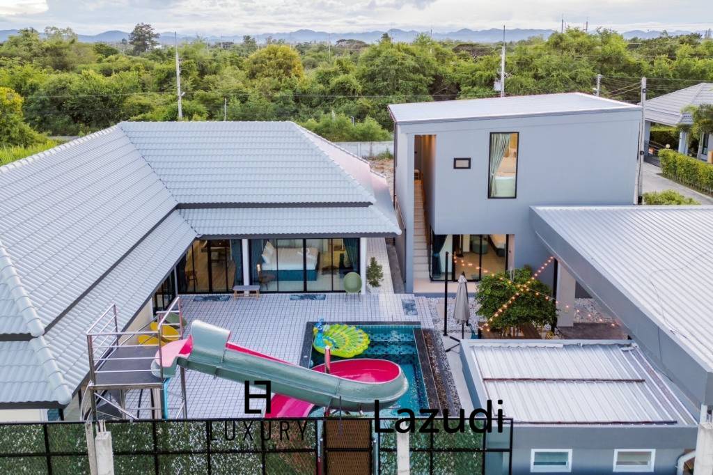 • สระว่ายน้ำส่วนตัวกลางบ้าน พร้อมสไลเดอร์ขนาดใหญ่